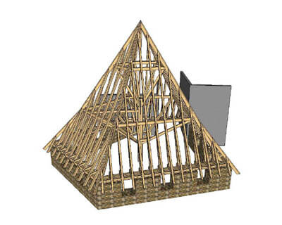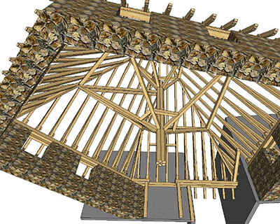 Nudimo CNC razrez vseh vrst lesenih konstrukcij z računalniško vodeno tehnologijo Hundegger K2i.